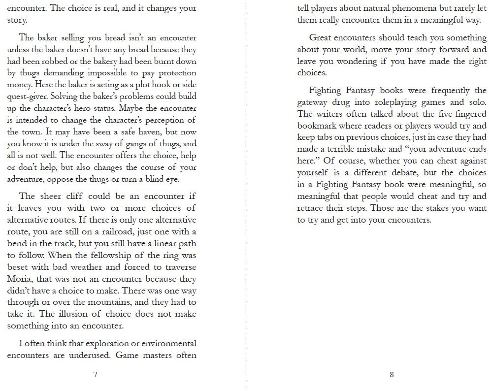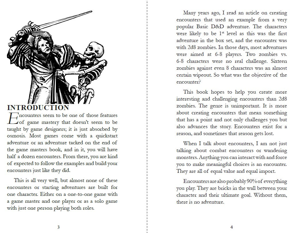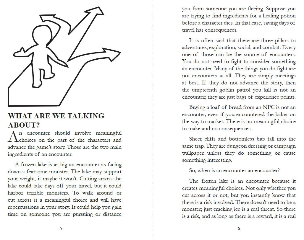 Encounters are fundamental to great game sessions and campaigns. This book contains my ideas on combining player goals, character choices, stakes and consequences for building encounters that build into adventures and into satisfying campaigns.
