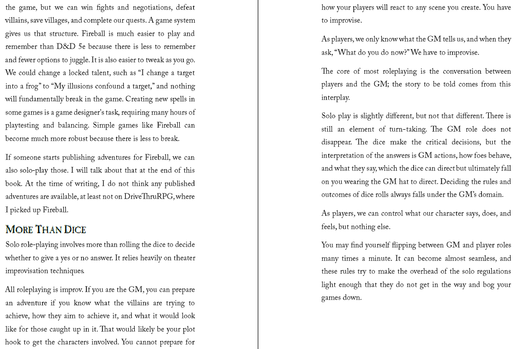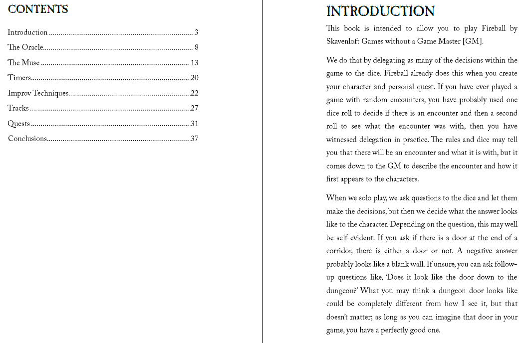 This book is intended to allow you to play Fireball by Skavenloft Games without a Game Master [GM].