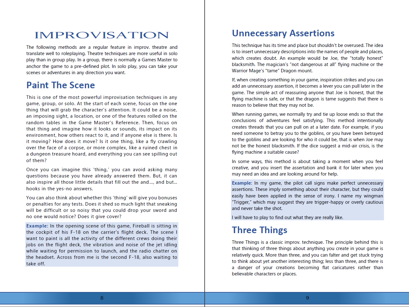 I also discuss some improvisational theatre techniques that are easily applied to solo playing and add a drama pool mechanic based on the attribute check. Finally, I discuss adventures and using the oracle to control NPCs and monsters.