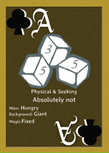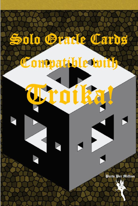 This deck of 72 cards allows you to play Troika! without dice, but also without a Game Master. The cards give you a collection of oracles and prompts to help you answer questions, and the dice allow you to use the rolls on the cards.
