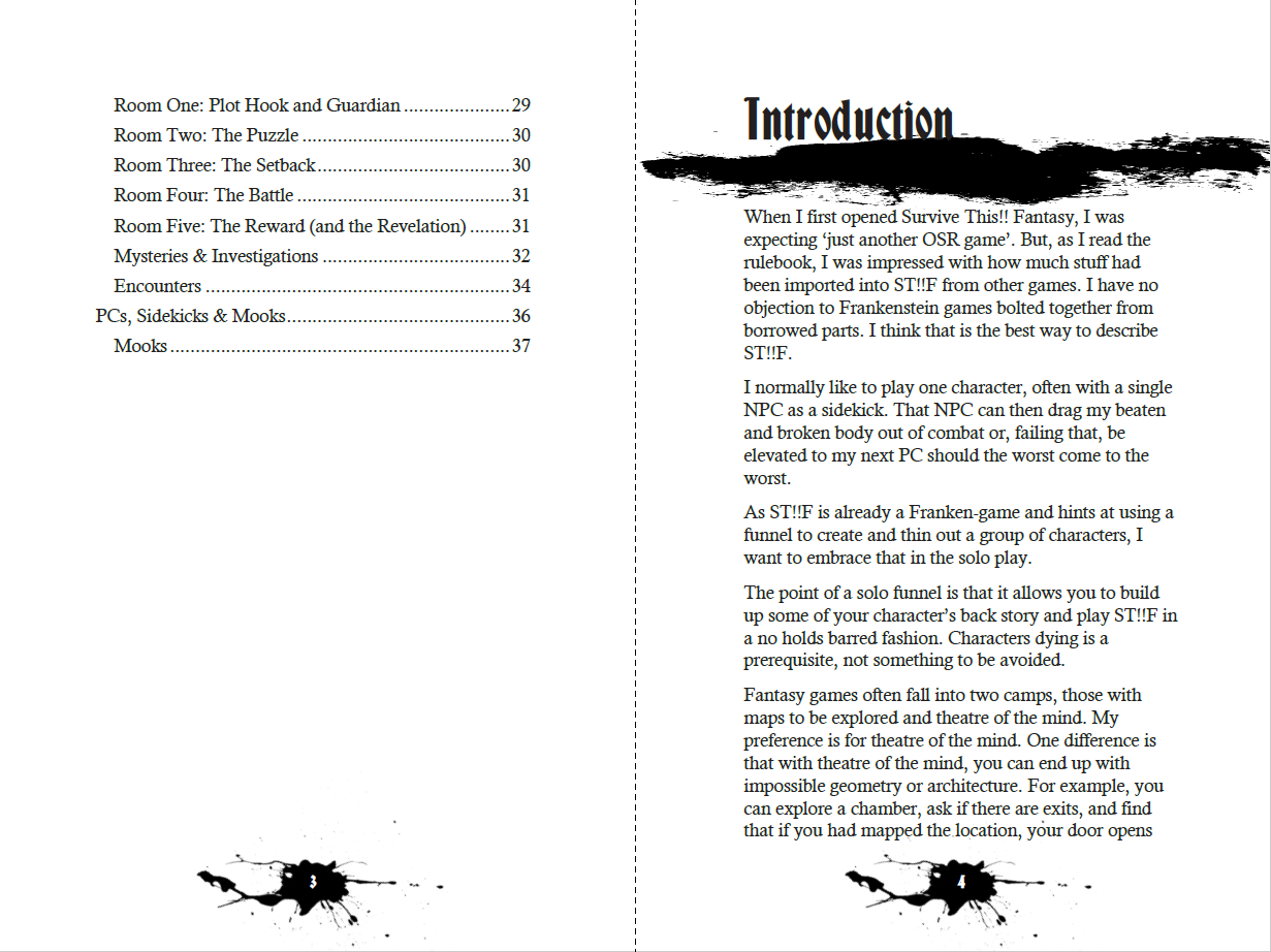 The Survive This!! family of games blends the basic gameplay of OSR with a simple-to-grasp skills system. The Fantasy version of this game is well supported by Bloat Games with many companion books. This is a buy as much or as little as you need to play your game.